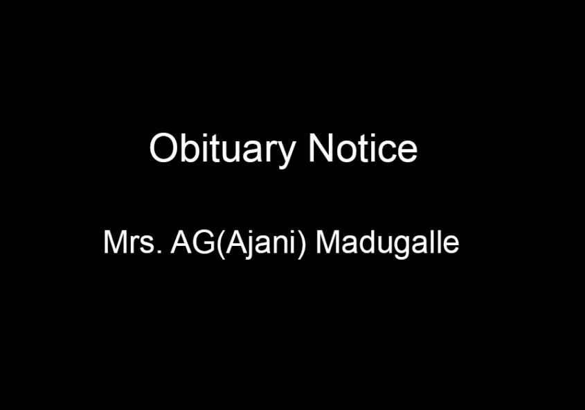 Mrs.AG(Ajani) Madugalle(61yrs), retired from LC.Dept.in 2018, wife of Mr.DLA.Madugalle (BOC pensioner) expired, remains lying at AF.Raymond(Borella) funeral parlor from 9am.on Sunday 6th & cremation at 3 pm at Borella cemetery. Details 0777654666…