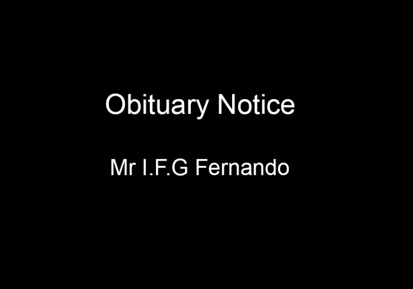 Mr I F.G.Fernando (Irwin) (Senior Manager Retired in 1995 from Inward Department ) passed away. Remains lying at Mahinda funeral parlour on Wednesday 20th from 8.30am to 8.30 pm and Thursday 21st…