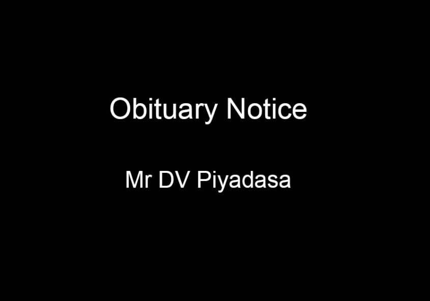 Mr D. V. Piyadasa (Manager, retired from corporate Branch in 2004) of no 16 Dampitiyawa Road Padukka expired. Cremation on 30th Friday at 2.00 p. m at Galagedara cemetery (Details Amal, son…