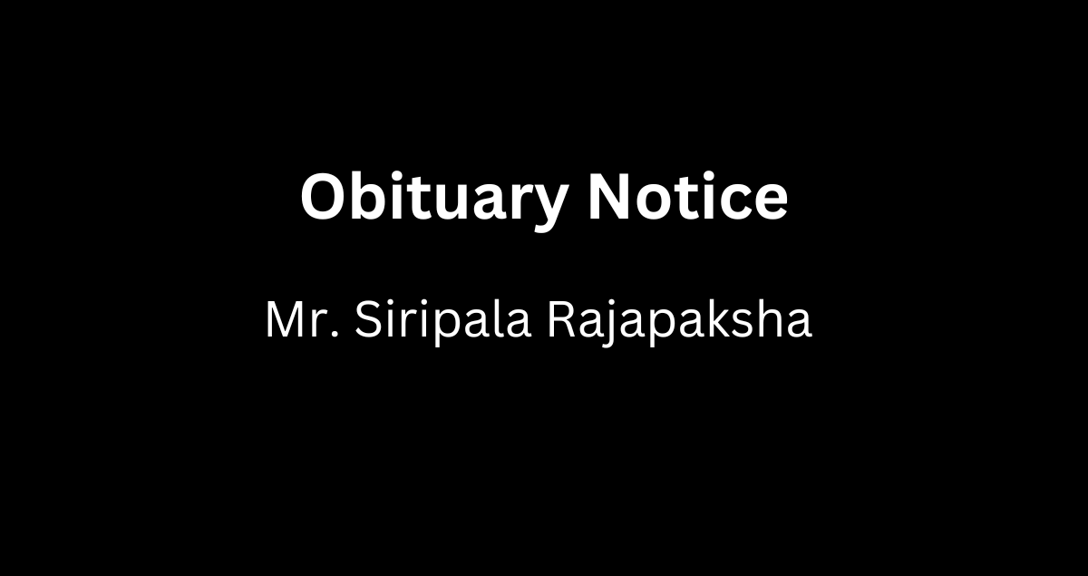 Tha Demise of Mr. Siripala Rajapaksha