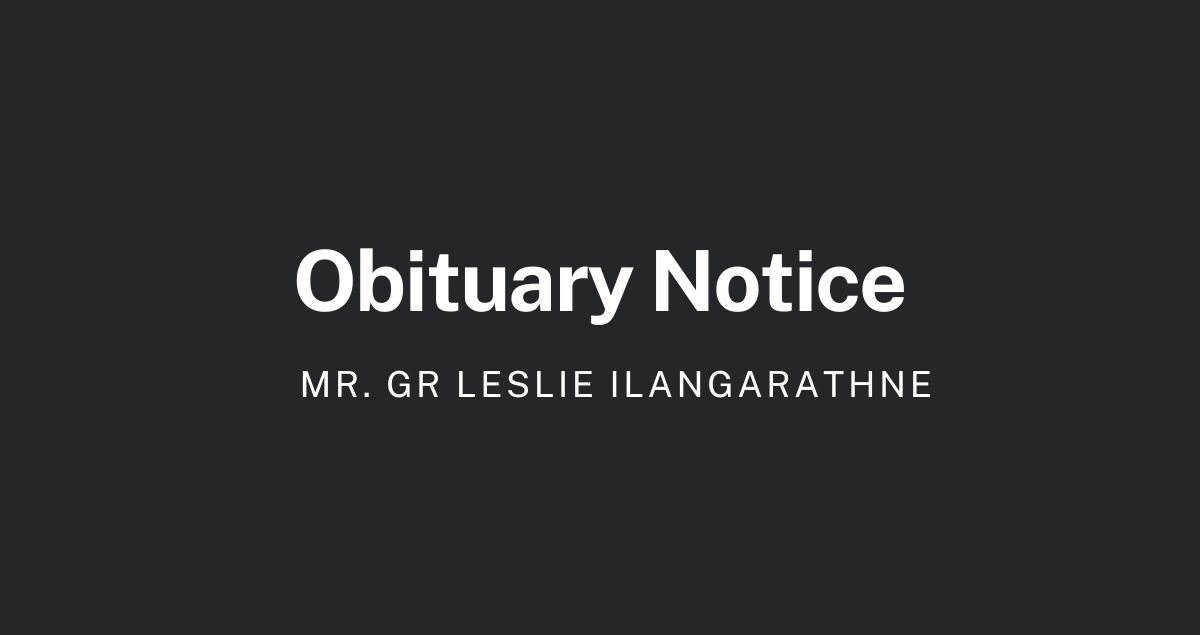 Mr. GR Leslie Ilangarathne, (Executive Officer retired in 2018)of 42/1, Ranasiri Mawatha, Wewdeniya, Kottawa passed away.