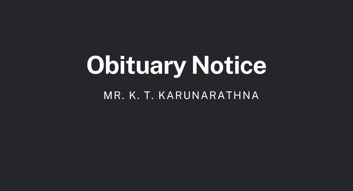The Demise Of Mr. K. T. Karunarathna