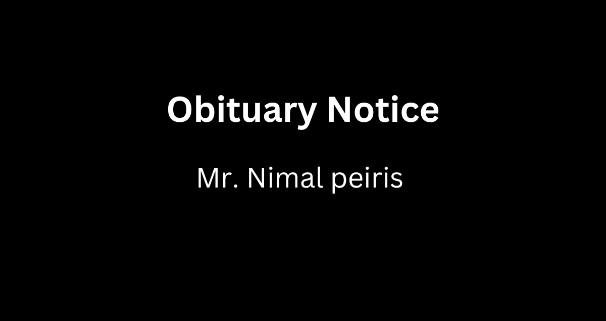 ලංකා බැංකු විශ්‍රාමිකයන්ගේ සංගමයේ ගරු සභාපති තනතුර හා ගරු ප්‍රධාන භාණ්ඩාගාරිකධූරය දිර්ඝ කාලයක් හෙබවූවා වූද සංගමයේ ගම්පහ දිස්ත්‍රික් සංවිධානයේ ආරම්භක සභාපතිවරයාවූද එම්.ආර්.පී.ඒ.එන්.ඊ පීරීස් (නිමල් පීරිස්) මැතිතුමන්හැත්තෑ හත් වසරක් ආයු වළදා 2024 අප්‍රේල් මස 8 වන දින අභාවප්‍රාප්ත වූ බව සංවේගයෙන් දන්වා සිටිමු. දේහය කිරිබත්ගොඩ මාකොළ පාරේ සරචන්ද්‍ර ඩයස් මාවතේ(භාතිය මාවත) අංක 1/80 දරණ එතුමාගේ නිවසේ තැන්පත් කර තැබෙන අතර අදාහනය 2024 අප්‍රේල් 10 වන බදාදා සවස 4.00 ට මාකොළ  උතුර නෙල්ලිගහ කනත්තේදී සිදු කෙරේ.මියගිය නායකයාට අවසන් ගෞරව දැක්වීමට එක්වන මෙන් සාමාජිකත්වයට ඇරයුම් කරමු.